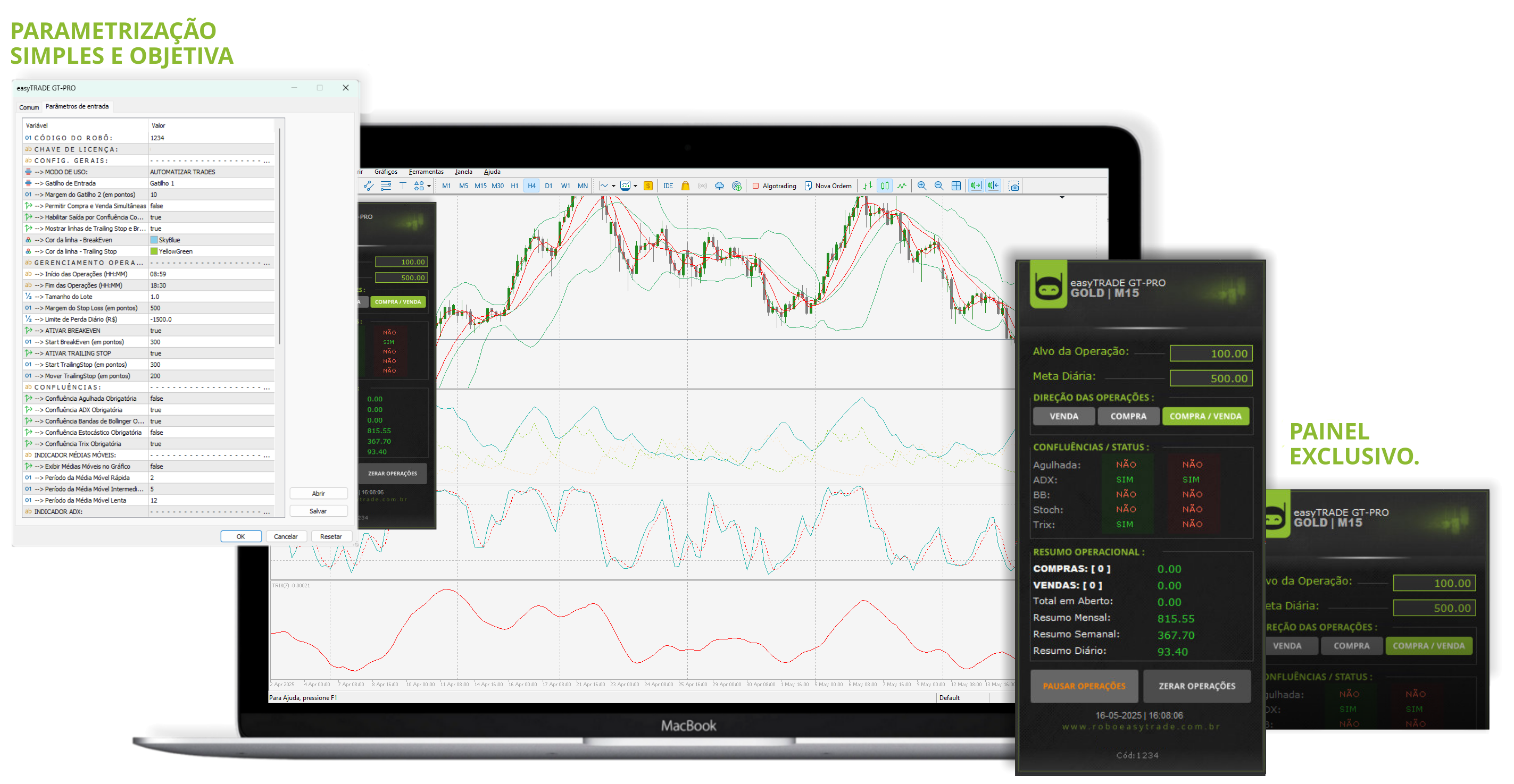 Disclaimer: O easyTRADE GT-PRO é um robô trader desenvolvido para investidores e traders que possuem perfil de risco agressivo. Investimentos em renda variável envolvem risco e podem resultar em perdas, não nos responsabilizamos por possíveis perdas financeiras. Ressaltamos ainda que lucros passados jamais serão garantia de resultado no futuro. Isso não é considerado um conselho de investimento. Depoimentos e histórias de sucesso não devem ser vistos como resultados garantidos.